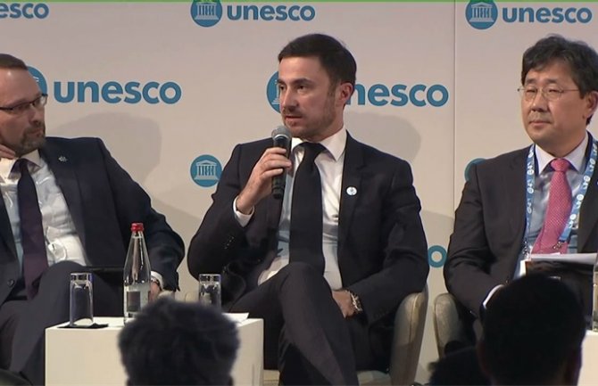 Podsjetimo, ministar Bogdanović juče je počeo učešće na Generalnoj konferenciji UNESCO, kada je govorio na Plenarnoj sesiji. Uz ministra Bogdanovića, rad Generalne konferencije UNESCO na kojoj učestvuje preko 140 ministara i visokih predstavnika država članica, prati Stalna delegacija Crne Gore pri toj organizaciji i to – ambasador Ivan Ivanišević, v.d. generalnog direktora Generalnog direktorata za multilateralne poslove i regionalnu saradnju Ministarstva vanjskih poslova Veljko Milonjić i generalna sekretarka Crnogorske nacionalne komisije za UNESCO Milica Nikolić.