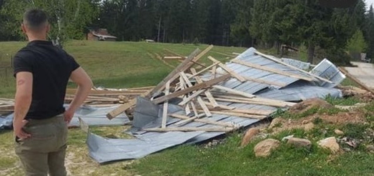 Kako se vidi na snimcima objavljenim na društvenim mrežama vjetar je obarao stabla, porušio pomoćne objekte i prouzrokovao veću materijalnu štetu...