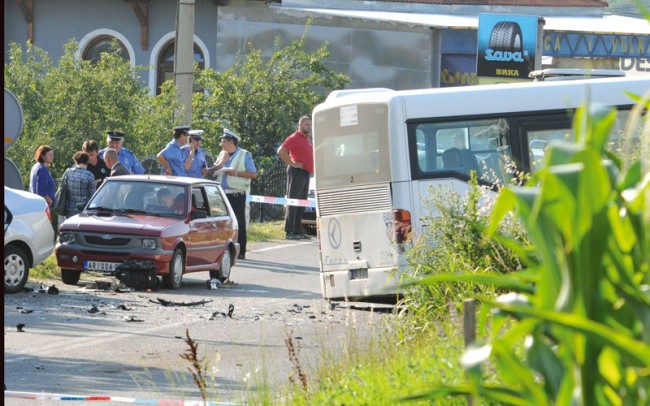 U tom trenutku, na škodu je naletio crveni "jugo", aranđelovačkih tablica, u kom srećom, niko nije povrijeđen. Od siline udara, autobus je sletio s puta i tom prilikom, povrijeđeno je pet putnika.