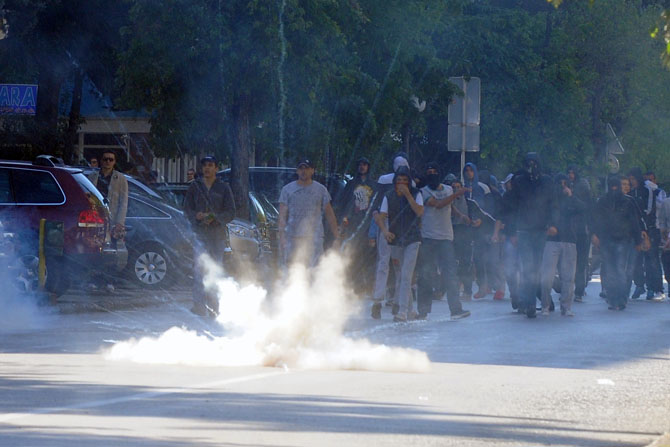 Policija je u tim sukobima upotrijebila pendreke i suzavac, dok su protivnici Parade ponosa uzvratili petardama, bakljama i kamenicama. Učesnici Parade ponosa, njih oko stotinu, nakon završetka povorke evakuisani su policijskim maricama iz centra grada, jer nije mogao drugačije da im se obezbjedi siguran izlaz iz zone u kojoj je održana prva gej parada u glavnom gradu Crne Gore.