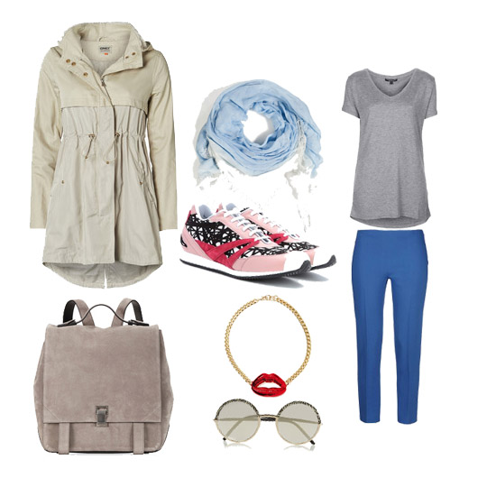 Casual kombinacija nam je ujedno bila i najmanje stilski zahtjevna za kombinovanje, pa smo tako uzeli pantalone u plavoj boji dužine do gležnja (tako uvijek izgledate viši), a u gornjem dijelu smo birali običnu pamučnu majicu i šal kako nam ne bi bilo hladno. Ogrnuli smo se parkom, i posložili modne dodatke.