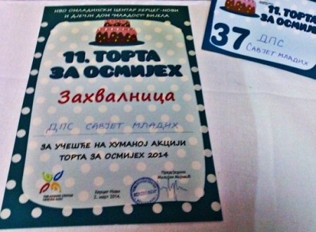 Mladi DPS-a su se i ove godine pridružili akciji „Torta za osmijeh” koju za mališane iz Dječjeg doma „Mladost” u Bijeloj tradicionalno organizuje NVO Omladinski centar Herceg Novi.