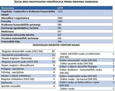 Od tog broja, podaci ZZZCG pokazuju, da su poslodavci najviše tražili ekonomiste i pravnike, za šta postoji o logičano obrazloženje.
